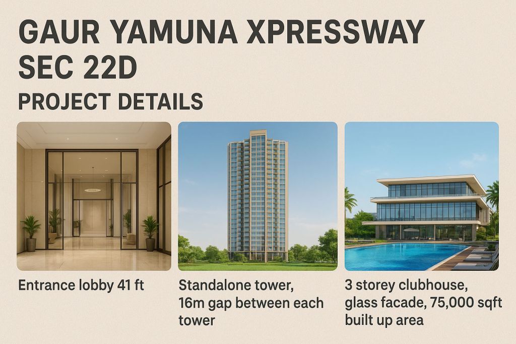 Smart investment is shifting to Sector 22D on the Yamuna Expressway, led by Gaurs. This area is set to flourish with the upcoming Jewar Airport and Film City, making it more than just a home but an opportunity for modern investors. Gaurs offers 3 BHK and 4 BHK luxury apartments in this well-planned community, designed for comfort with reliable infrastructure and amenities, backed by a trusted legacy known for on-time delivery. Sector 22D is distinguished by its accessibility and potential for appreciation among Gaurs’ projects.